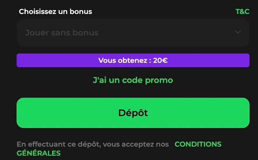 • Le dépôt minimum requis : Vérifiez le montant minimum à déposer pour être éligible au bonus. Il est généralement de 10€ ou 20€, mais peut être plus élevé pour certaines offres spécifiques.